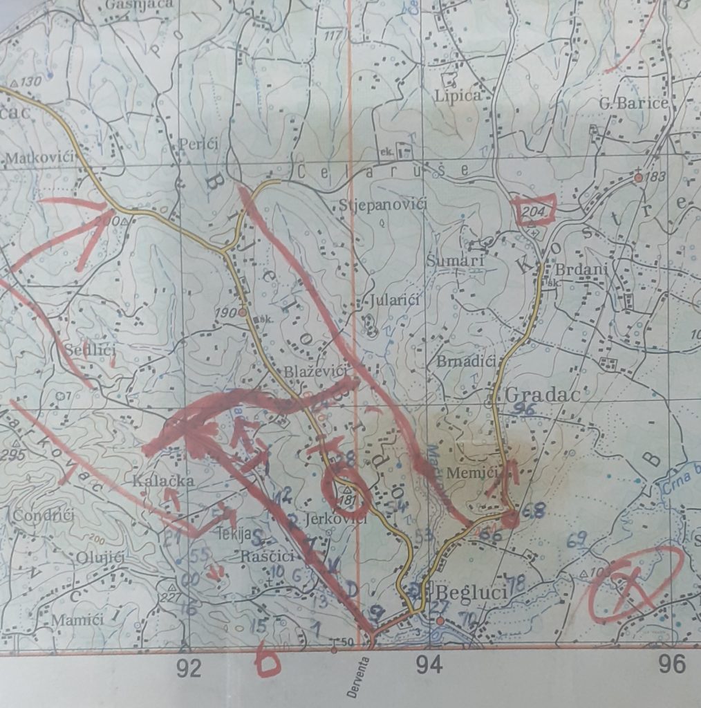 Ostaje trajno u sjećanju. Rastjerali smo Turke, ali su se iznemada pojavili Hrvati. Izmiješali smo se sa njihovim bojovnicima, a spasili smo se zahvaljujući jednom našem borcu i njegovim nadimkom „Jozo“. Bio je to Zoran Sančanin, momak od koga se zaista imalo šta naučiti. Naravno i tu, u Beglucima“ presudila je nača hrabrost, volja i upornost.